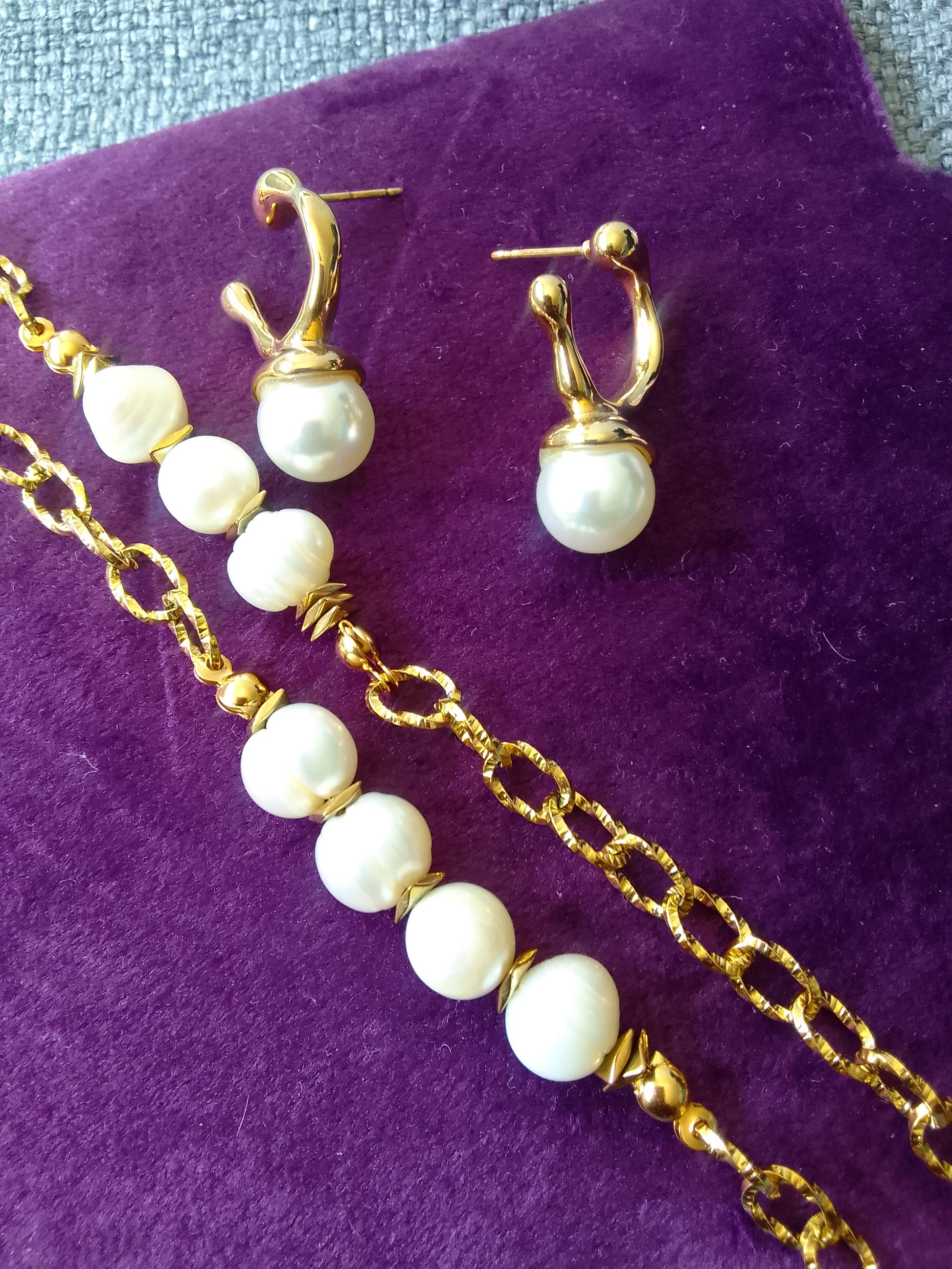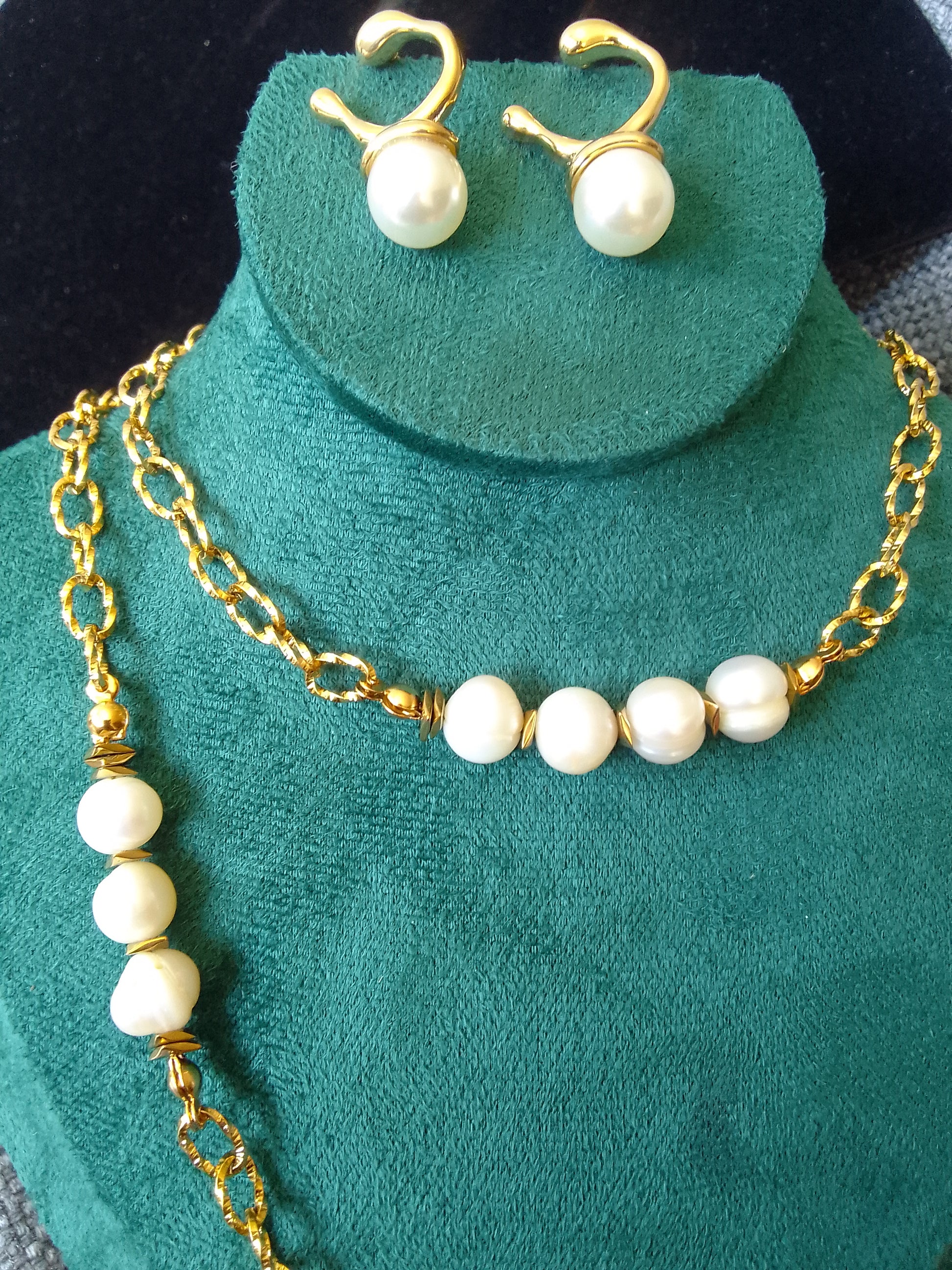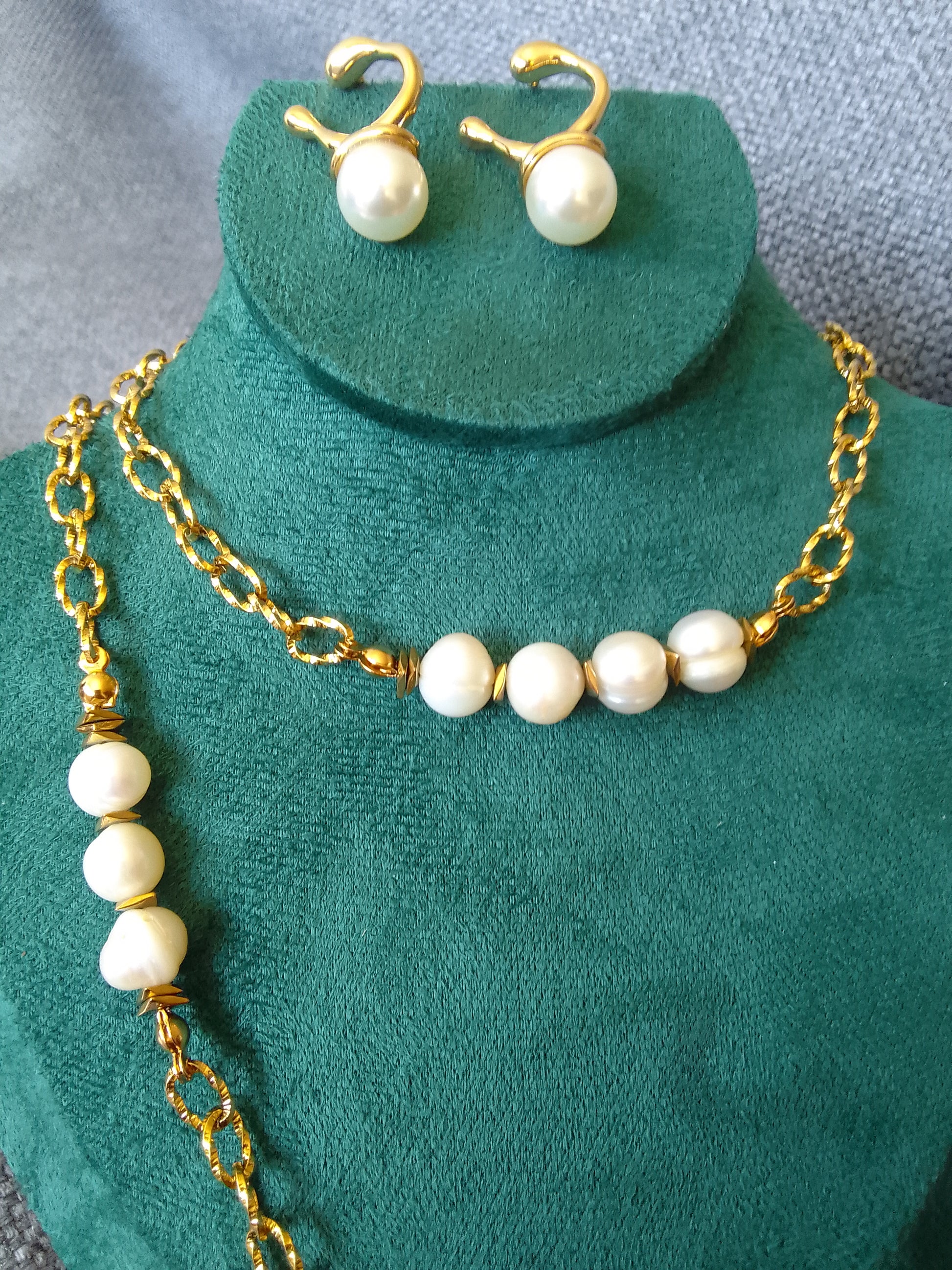 Boucles+ ras de cou + bracelet >> Perles blanches