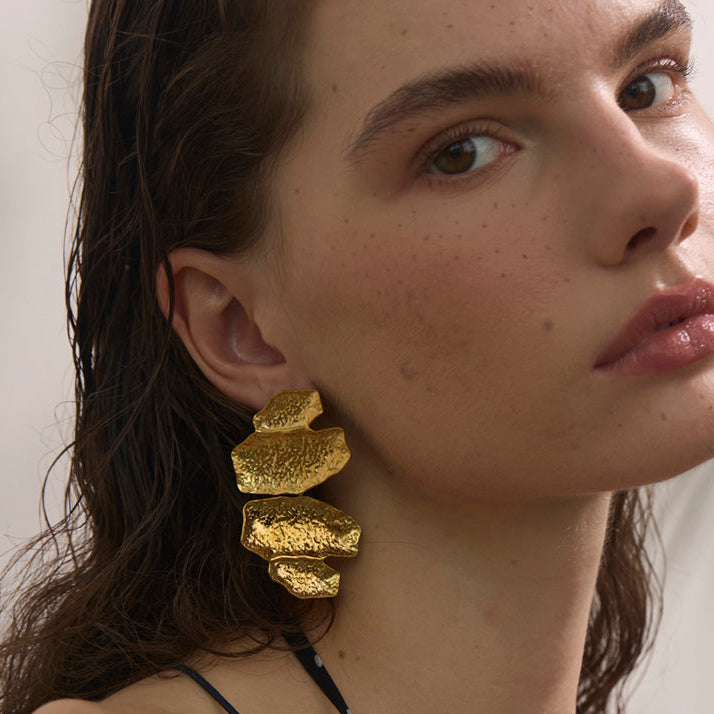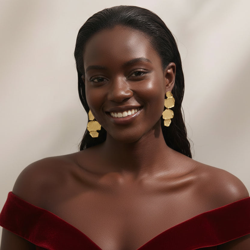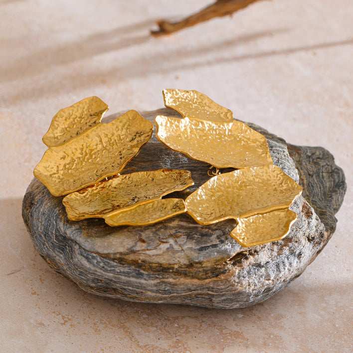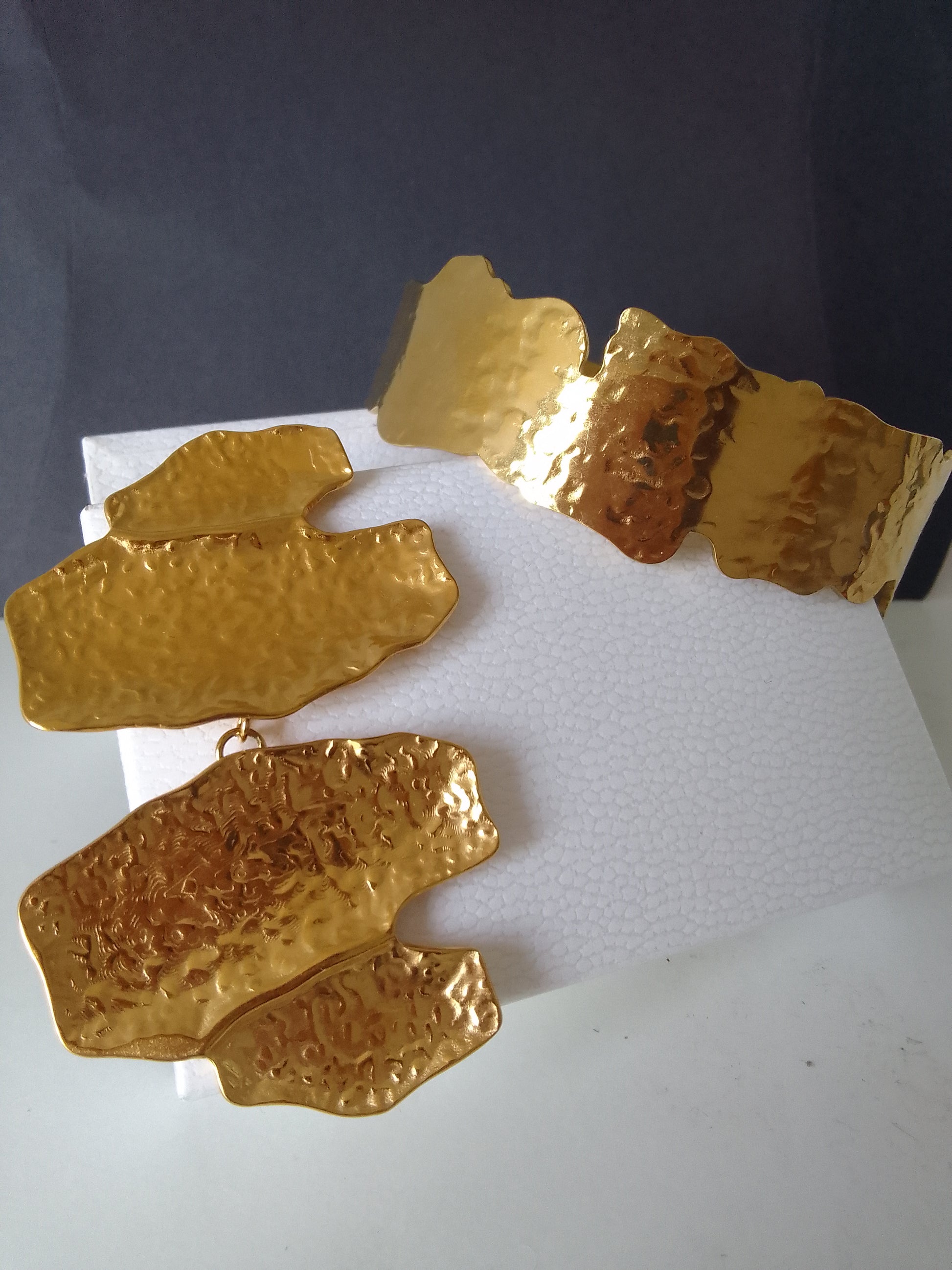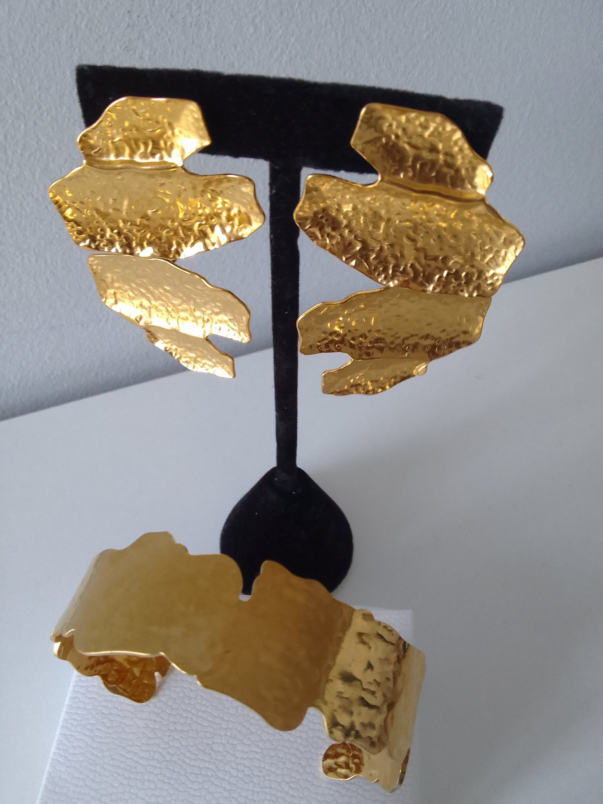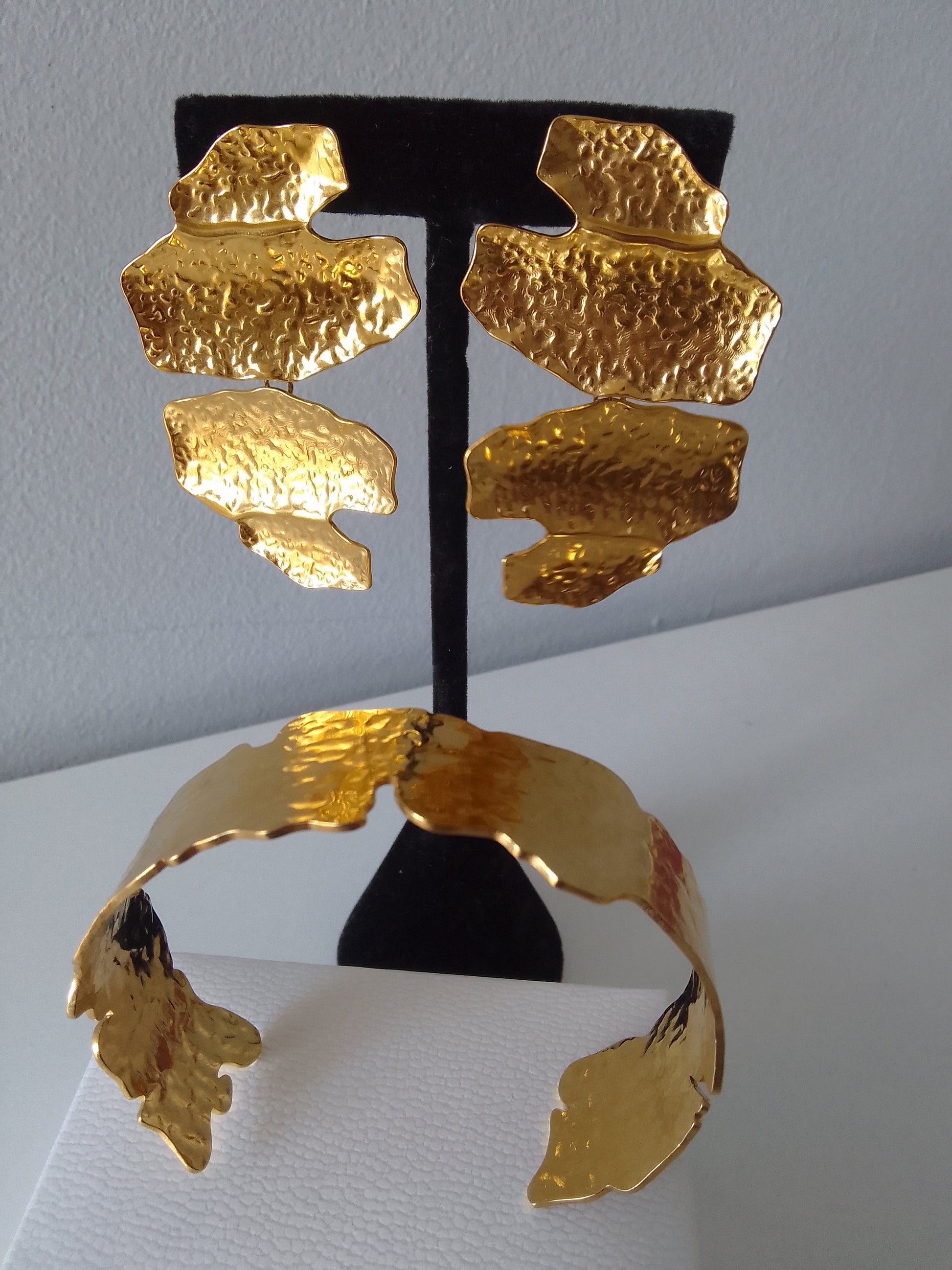 Boucles longues et Bracelet assorti ajustable ouvert.