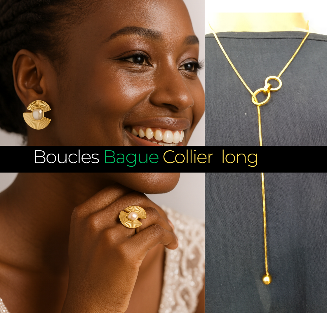 Boucles et Bague Loty + Collier long
