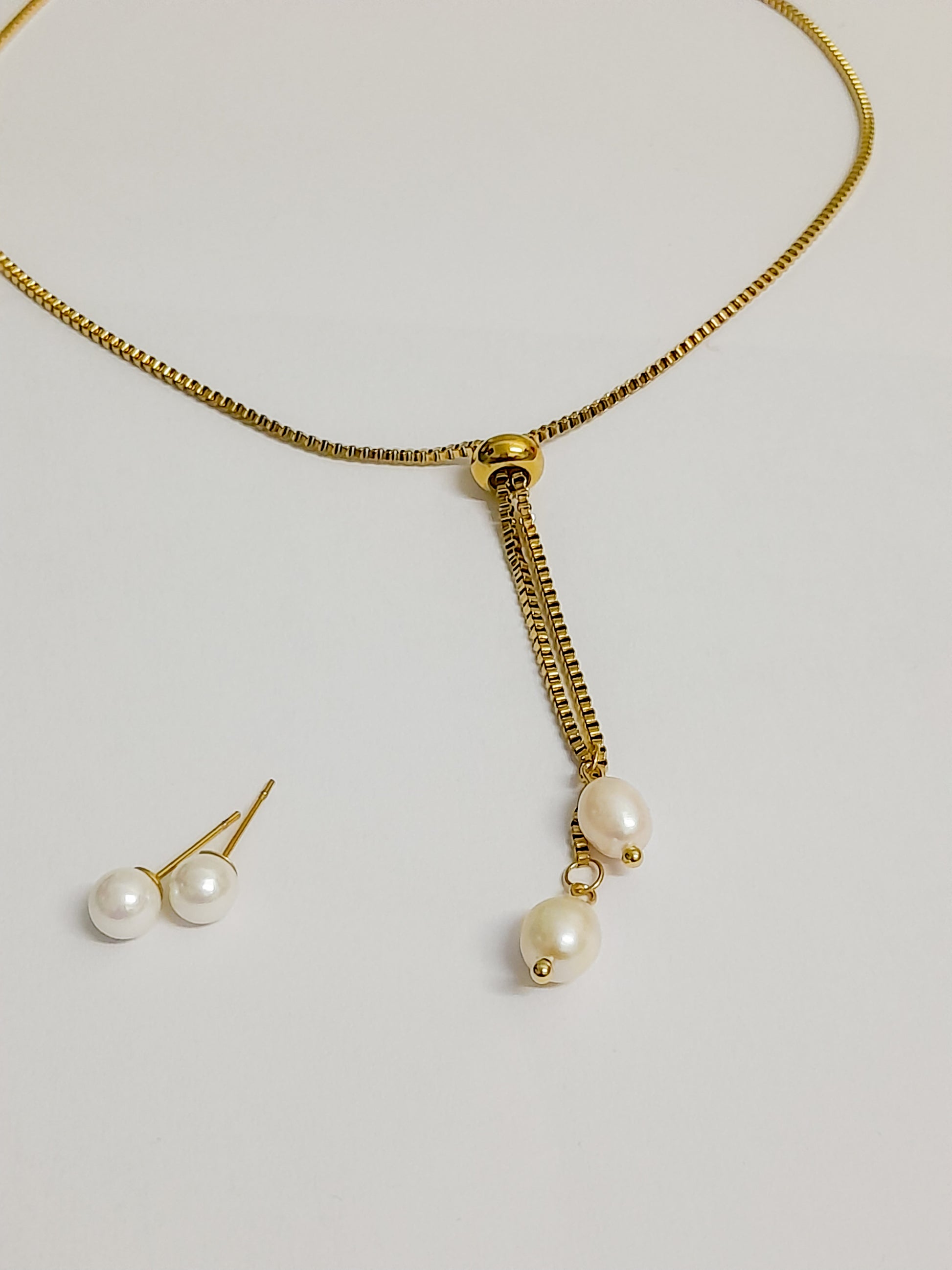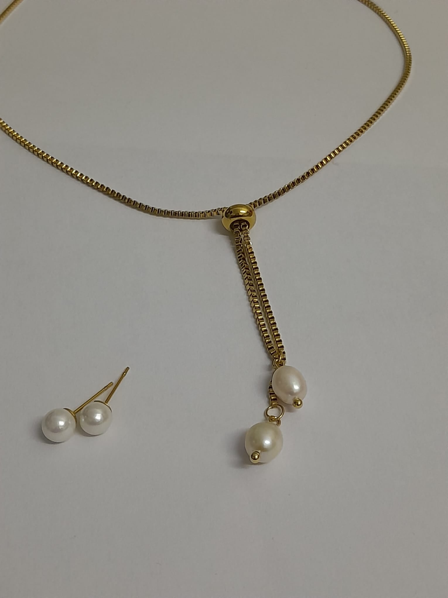Collier pendentif double en perles naturelles blanches.